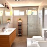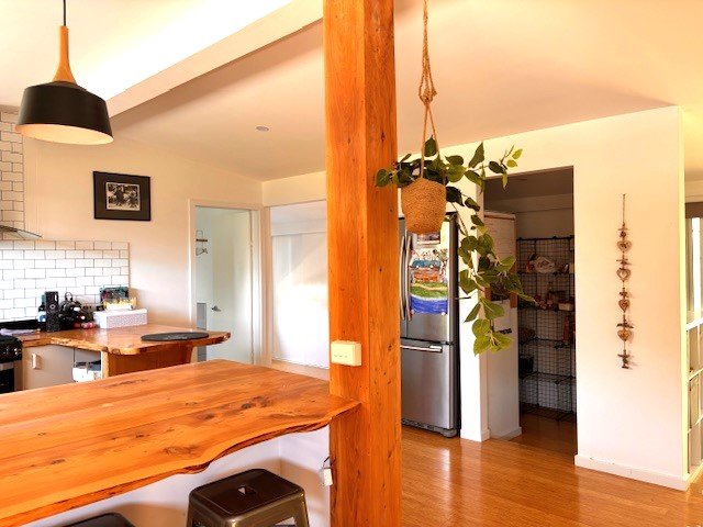 The kitchen is spacious, modern, with dishwasher and butler’s pantry. Floors are timber grain vinyl throughout, except bathroom which is tiled.