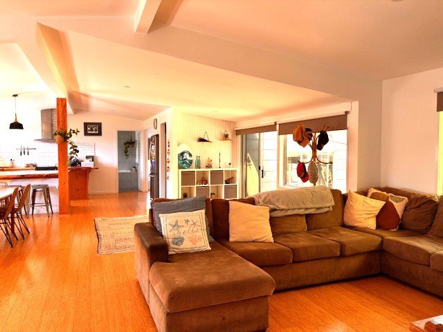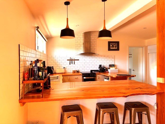 Main building has three bedrooms, a study nook, a generous tiled bathroom and a huge living-kitchen-family area ( approx. 12 metres by 7 metres). Wood heating and split system heat-air conditioning gives all year comfort.