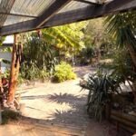 The other side of the covered area goes to the second pavilion which has a large bedroom-living area, a single second bedroom, and a roomy laundry with toilet and room to put a kitchenette .
