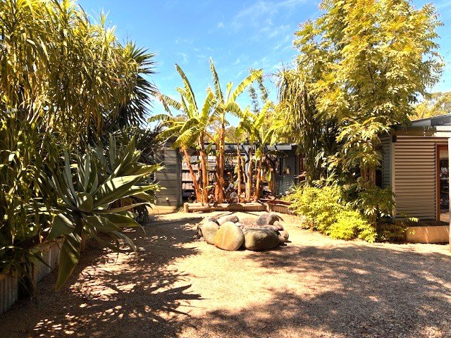 A step out onto timber deck leads to a covered outdoor entertaining area with bar b q and a firepit constructed from boulders. Perfect for entertaining in any season.